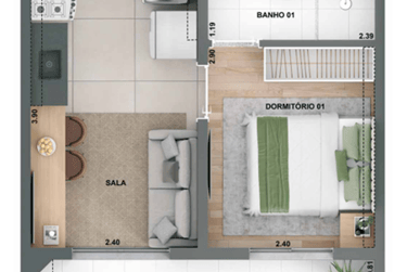 ✓ Dormitórios entregues com piso laminado